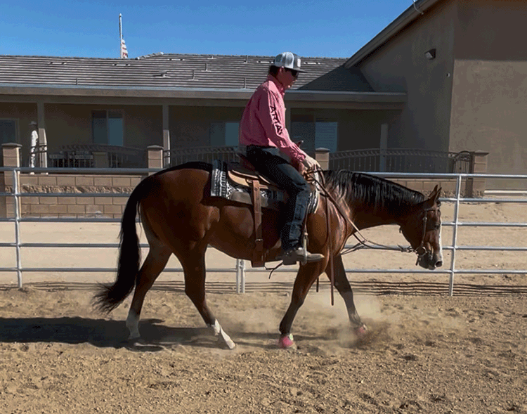 Lungeline, Driving Reins, Ridden in Snaffle Bit and Bozal, Ridden, Bareback with Bozal, Rides out alone or with other horses, Nice slow, show trot/jog, Moves off of leg pressure well, Soft in the mouth, Will lope good round circles, Carries head low, No spook (will walk by, over or through anything), Loads and trailers quiet, Turned out with another gelding, Hot walker, Cattle, Plays Ball, He has been ponied from another horse, Open/Close gates from saddle